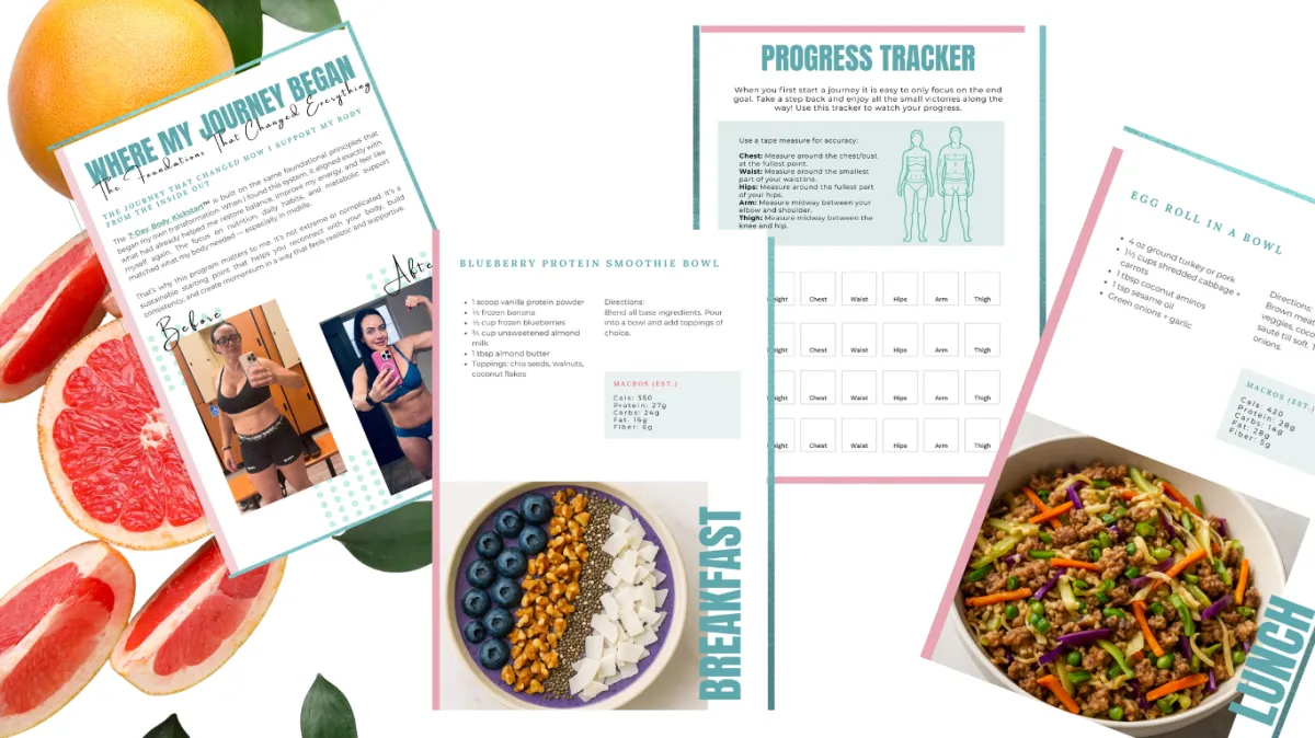 A 38 page blueprint and tracker to using balanced meals, intentional movement, and holistic products to unlock fat loss, reduce stress, increase energy and gain confidence.